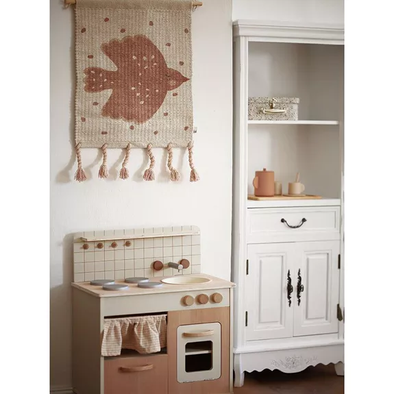 Dit wandtapijt ‘vogel’ is super schattig en delicaat gemaakt door Nattiot. Voor dit wandtapijt van een vogeltje werd gekozen voor kwaliteitsvolle katoen en zachte tintjes. Hierdoor zal deze Birdy snel een favoriet element zijn in de slaapkamer van jouw kleine schat!
